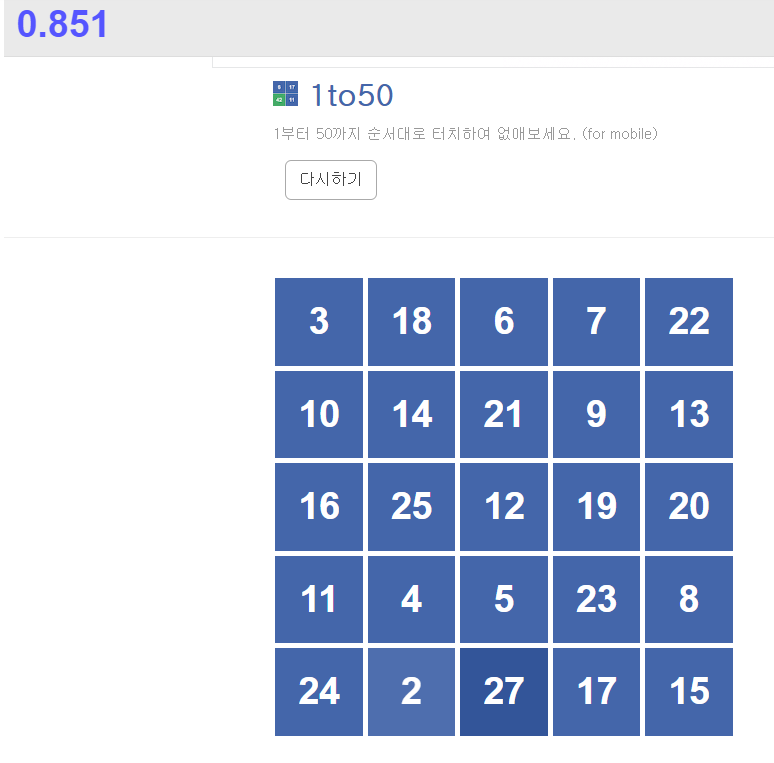 driver.get('http://zzzscore.com/1to50/') # URL을 통해 게임 사이트 열기