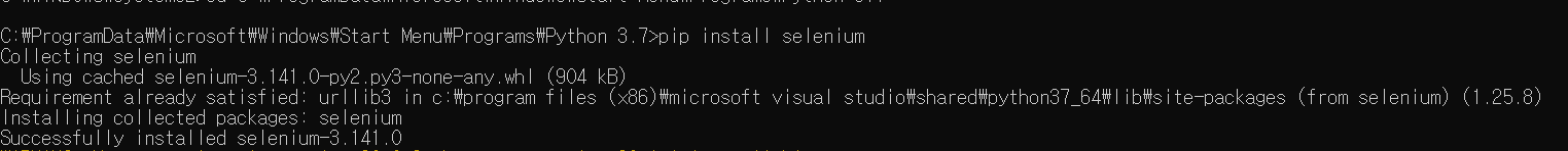 - cmd에서 파이썬이 있는 위치로 이동해 아래와 같은 명령어 입력