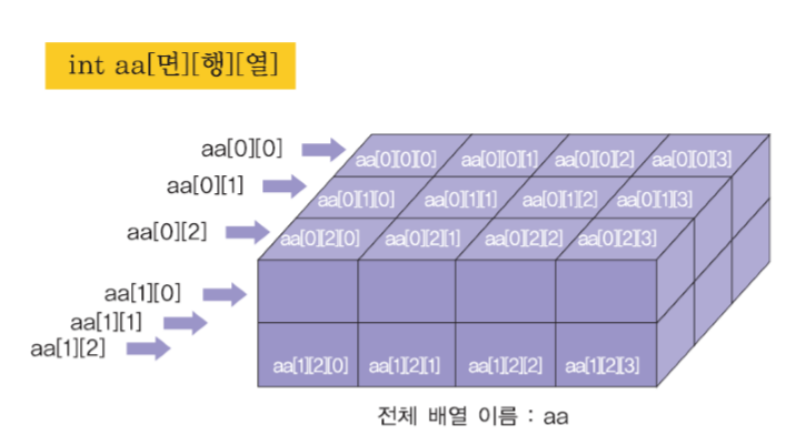 - 2차원 배열 위에 또 다른 2차원 배열을 쌓음