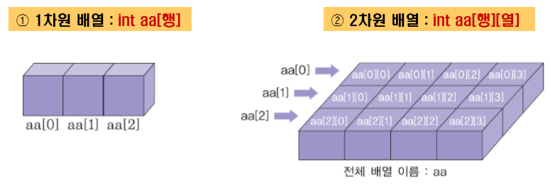 - 같은 자료형을 가진 변수들이 여러 개 필요할 때 사용